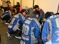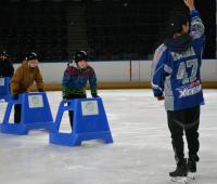 八戸市スポーツ大使派遣事業を活用して、東北フリーブレイズ選手の皆さんを講師にスケート教室を行いました。スケート靴の履き方やリンク上での転び方、滑り方を教えていただきました。フリーブレイズの皆さんのおかげで、年々滑りがが上達しているこどもたちです。